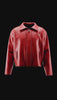 Ce travail thermique permet à la matière de garder une forme nette tout en restant souple au porté. Elle capte la lumière, révèle ses nuances rouges et bordeaux, et crée une tension visuelle entre rigidité et fluidité. Une matière façonnée, maîtrisée, pensée pour résister et marquer la silhouette sans la figer.